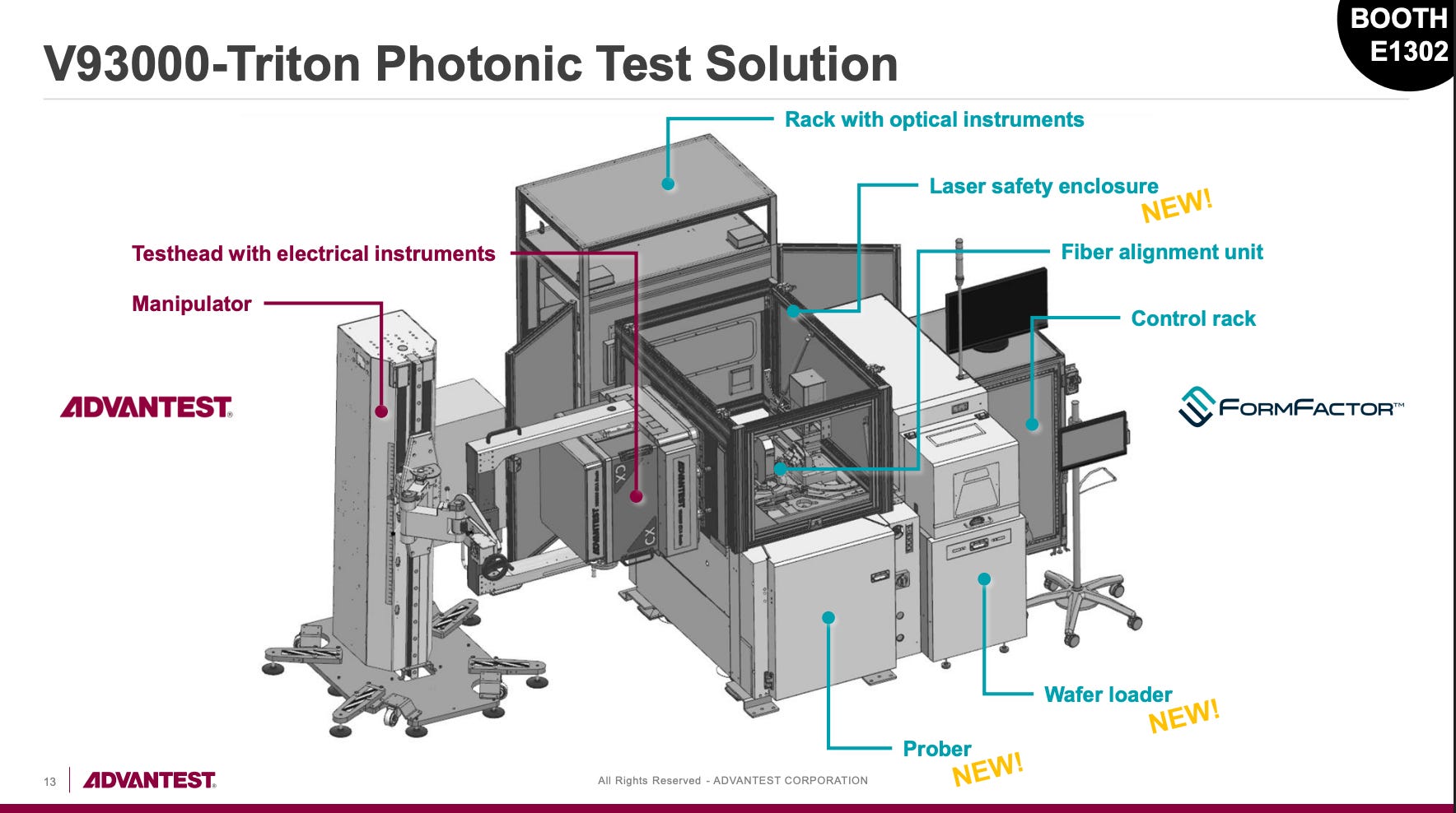 In April 2025, Advantest and FormFactor launched the V93000-Triton photonic test system, featuring 9-axis photonic alignment and FormFactor’s OptoVue Pro optical alignment system. Its CalVue technology enables in-situ calibration of Z-axis displacement and optical positioning by observing the fiber array via uniquely designed retro-mirror technology and applying automated machine-vision algorithms in real time, reducing fiber alignment time.