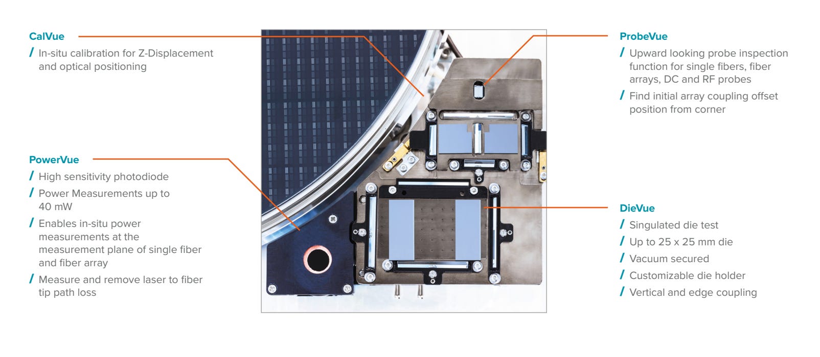 Keysight, the global leader in measurement instruments, is well known for its high‑speed test equipment and also provides a complete PIC wafer‑test solution. Keysight’s PIC wafer‑test solution is integrated with FormFactor, and is compatible with FormFactor’s Velox prober control software.